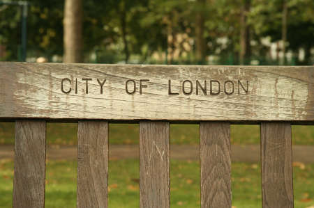 Park bench in London in Quenns Park with grass a path and a tree in the background