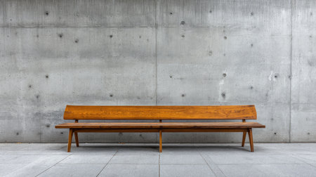 This striking image features a sleek wooden bench positioned against a textured concrete wall, showcasing a modern minimalist design perfect for contemporary spaces.
