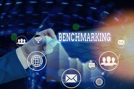 Writing note showing Benchmarking. Business concept for evaluate something by comparison with standard or scores