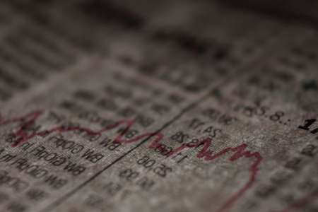 A piece of paper with a graph on it is on a table. The graph is a bar chart with a red and blue line. The paper is crumpled and has a few creases