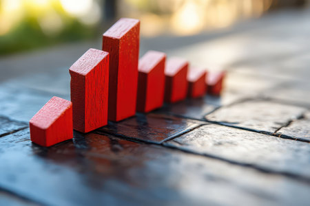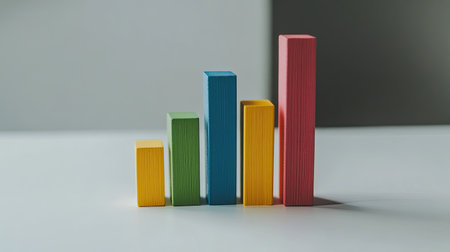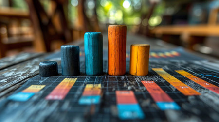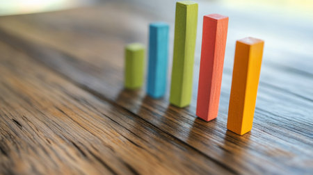 A vibrant bar graph created with wooden blocks showcases various heights. Ideal for visualizing data trends in business or educational contexts.