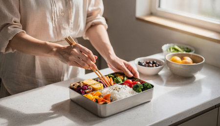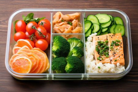 bento box with healthy food indicating waste reduction, created with generative ai