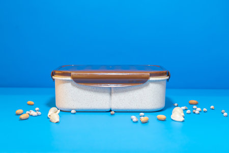 Plastic reusable food box, kitchen utensils for food storage.