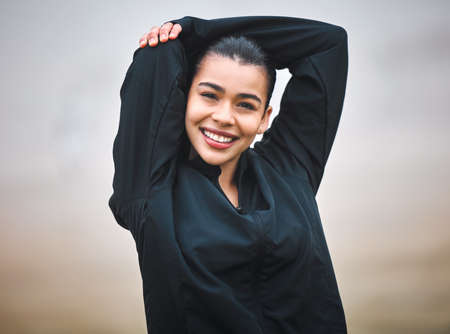 Going through my pregame warmup. Cropped portrait of an attractive young female athlete warming up outside.