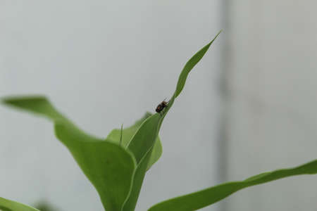 Small weevil on wet leaf in springtime generated by artificial intelligence