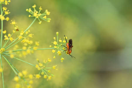 Culinary herb, Insect pollinates flowering dill in a garden bed