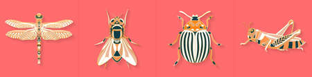 This high-resolution image showcases colorful cicadas on a bold pink backdrop, highlighting their intricate details and vibrant colors for a striking visual effect.