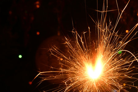Sparkle stick lightened during diwali festival celebration of the hindu festival with dark background and selective focus.