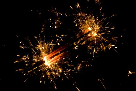 A selective shot of holiday sparkler fireworks in a pitch-black background