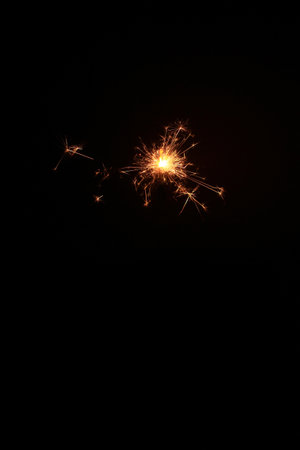New years eve sparkler isolated on black. Shiny blow of firework sparks. Pyrotechnics background.