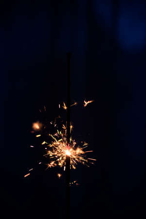 Closeup shot of a beautiful sparkler glowing on a dar bluish background