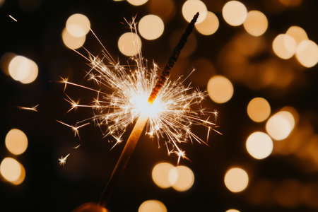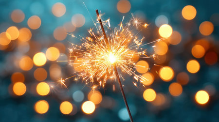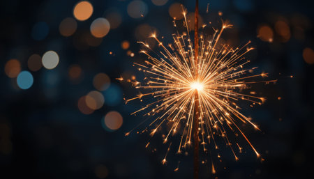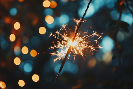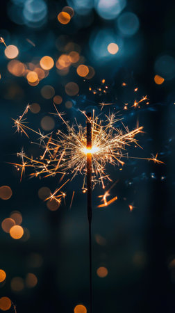 A mesmerizing sparkler lights up the night sky, surrounded by a beautiful bokeh effect, creating a festive and joyful atmosphere for celebrations.