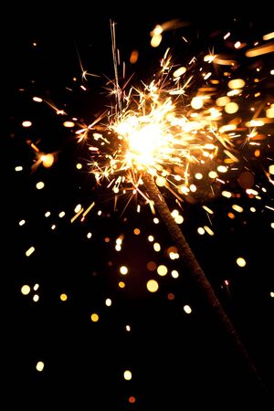 Close up of a sparkler with blurred background and bokeh effect for new year celebration banner