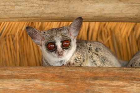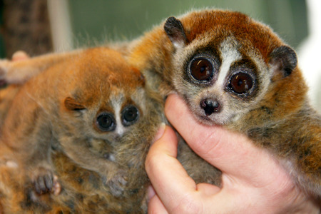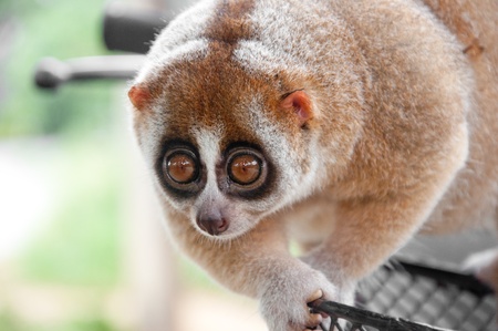 Slow Loris Monkey. Laurie, the little monkey, with the big round eyes with the surprise emotion on his face.