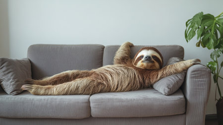 Cute Sloth Lies on the Sofa and Lazes. High quality photo