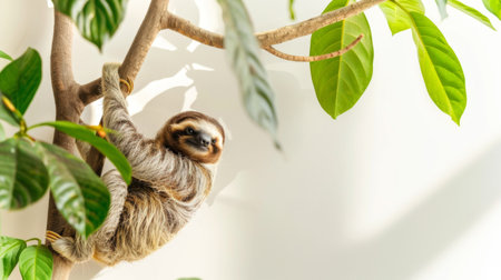 Peaceful sloth dangles from a branch, its slow movements reflecting serene jungle life, Ai Generated.