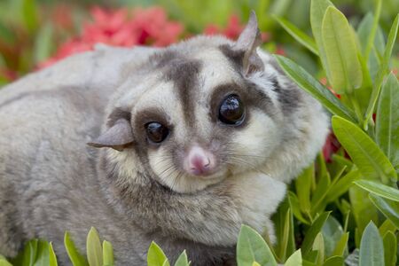 portrait of a cute sugar glider, flying squirrel, natural background, close up