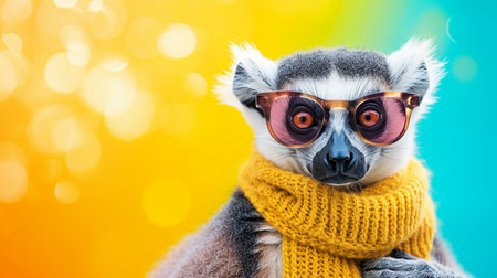 Lemur Catta sunglasses and scarf in studio with a colorful and bright background