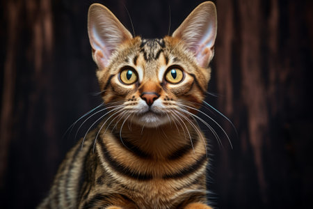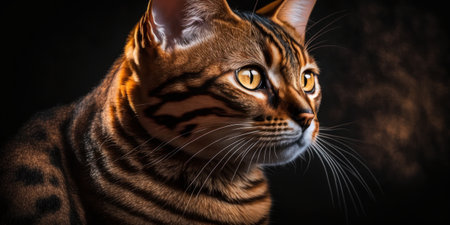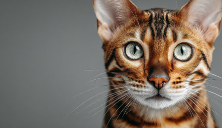 Bengal cat close-up portrait. There is room for text. Luxurious thoroughbred animal