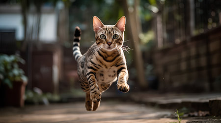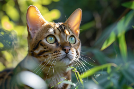 Tranquil Bengal cat forest. Mammal pet domestic. Generate Ai