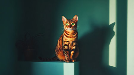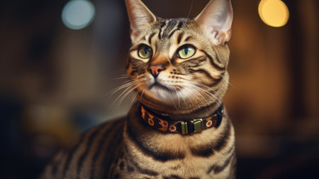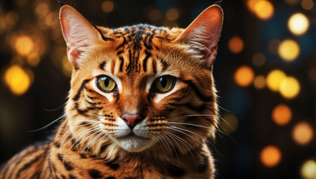 Stunning Bengal Cat Portrait with Mesmerizing Eyes and Shimmering Golden Coat on Elegant Display