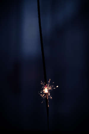 Closeup shot of a beautiful sparkler glowing on a dar bluish background