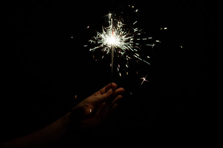 A selective shot of holiday sparkler fireworks in a pitch-black background