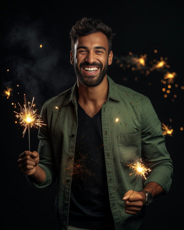 A luminous sparkler bursts with vibrant radiance, scattering shimmering sparks across a textured surface, capturing the essence of celebration and shared happiness.