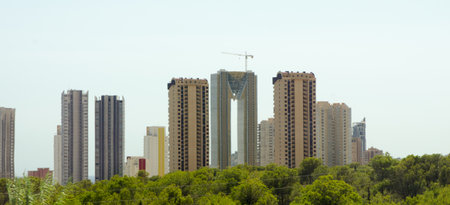 Skyscrapers of Benidorm cityscape during sunny day. Province of Alicante, Costa Blanca, Spain