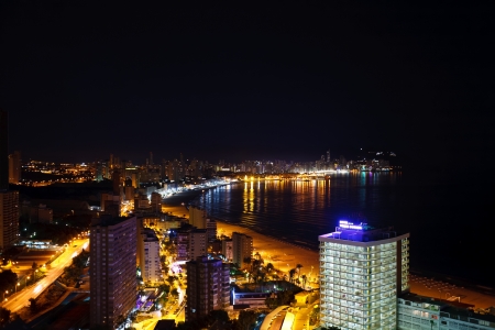 Highrise buildings along the beach of Benidorm at night, Spain