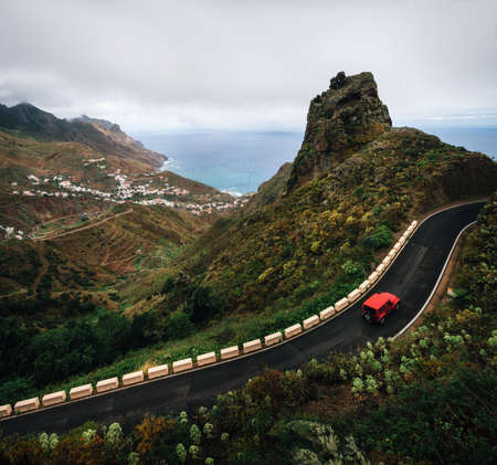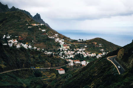 Panoramic view of Taganana village with winding road on north of Tenerife. Canary Islands, Spain
