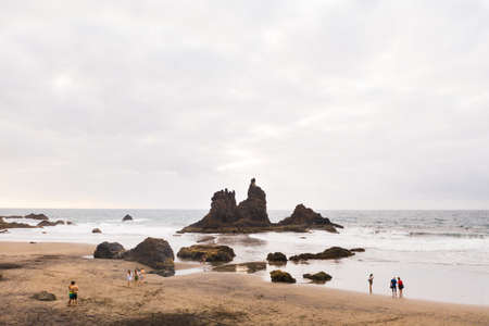 People on the sandy beach of Benijo on the island of Tenerife.Spain.