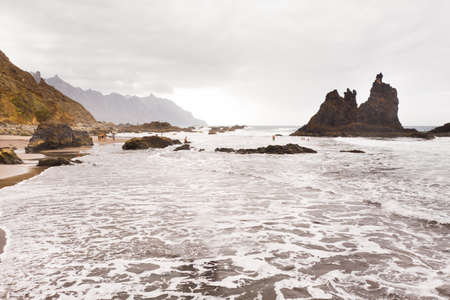 The sandy beach of Benijo on the island of Tenerife.The Canary Islands. Spain.
