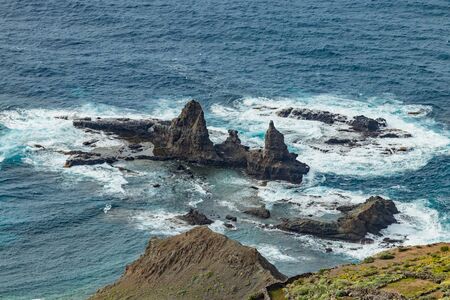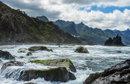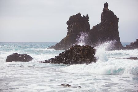 Landscape of the northern part of the island. Rocky coast, Playa de Benijo, Atlantic Ocean. Tenerife. Canary Islands. Spain.