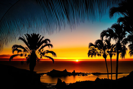 Beautiful sunset over Atlantic Ocean Tenerife island
