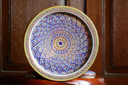 The Benjarong (Bencharong),Traditional tray Antique Ceramic with intricate designed from thailand.