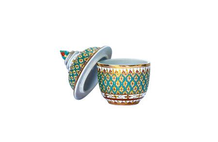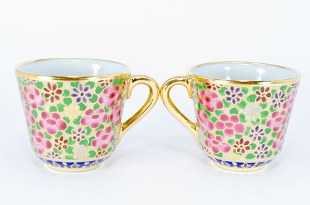 Benjarong Cup Souvenir porcelain from Thailand isolated on white