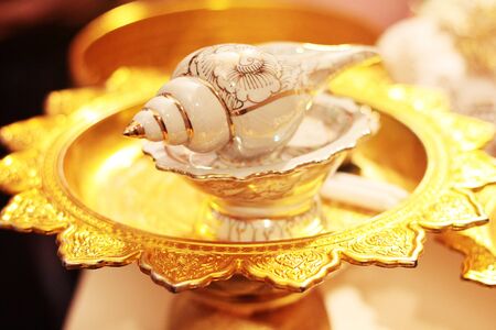 Conch shell on glod tray in tradition Thai wedding ceremony