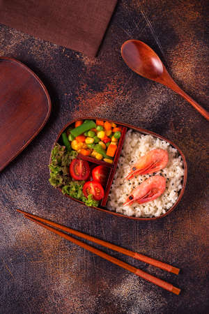 Bento Single portion takeout or home packed meal in Japanese cuision