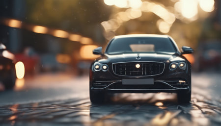 Sleek Black Futuristic Car Shines Under Sunset, Modern Design Concept Art