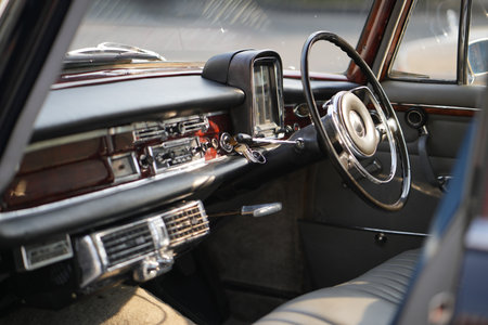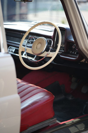 Novosibirsk, Russia - June 16, 2017: Mercedes-Benz 190 sl, close-up of the dashboard Photography of a classic car on a street in Novosibirsk.