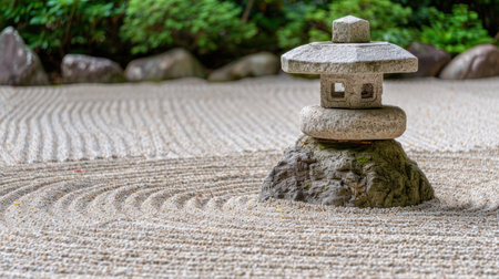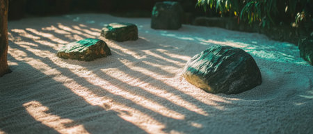 Serene Japanese zen garden featuring raked sand and rocks in minimalist design
