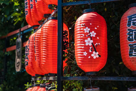 Chiang Rai, Thailand - January, 09, 2022 : Japanese red lanterns at a restaurant at Chiangrai Thailand.