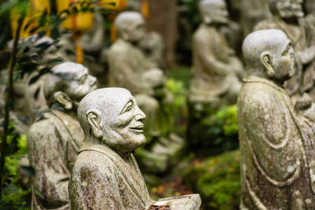 groups of buddhist arhat stone statue in the garden