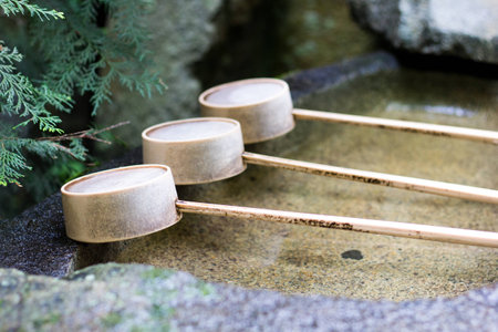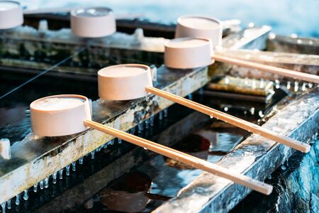 Japanese water purification, wash hand before enter the temple, bamboo ladle