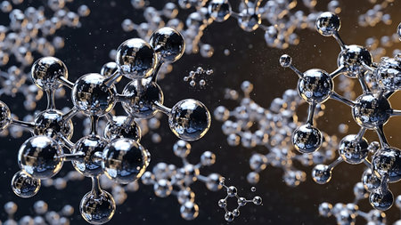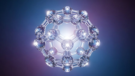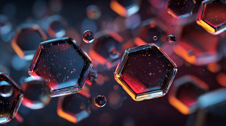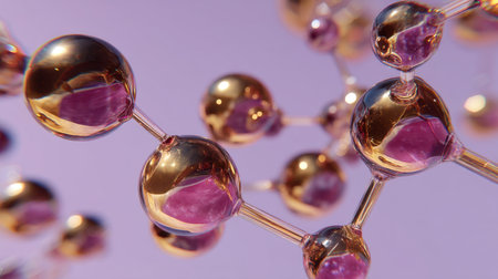 This abstract image captures the intricate beauty of a molecular structure with glass-like spheres, reflecting colorful shades in a modern design.