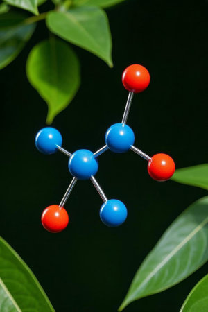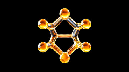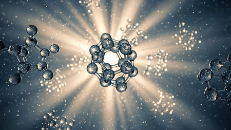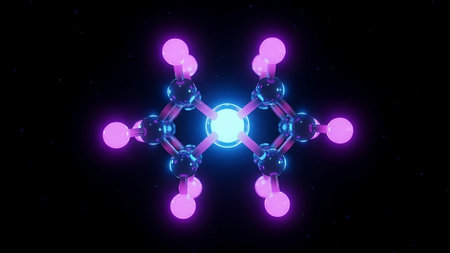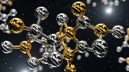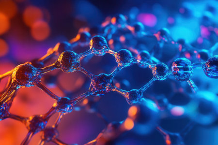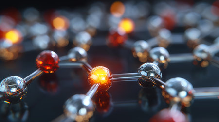Close-up view of molecular structure with glowing elements, highlighting chemistry concepts in a dark background