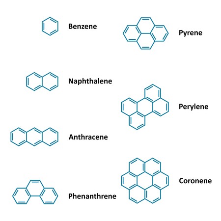 Set of vector polyaromatic hydrocarbons chemical structural formulas