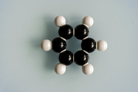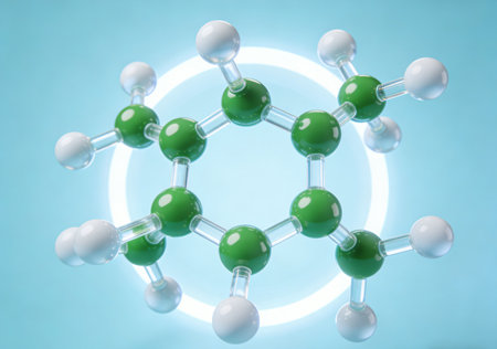 Molecule of benzene, ball-and-stick molecular model. Science related 3d rendering