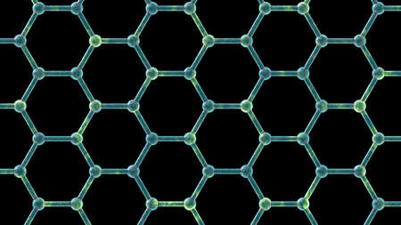 Graphene atomic structure, 3D illustration. Graphene is an allotrope of carbon that consists of a single layer of atoms arranged in a single-layer honeycomb lattice nanostructure